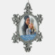 Calligraphy Our First Christmas Photo Light Blue Snowflake Pewter Christmas Ornament