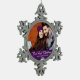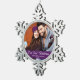 Calligraphy Our First Christmas Photo Purple Snowflake Pewter Christmas Ornament