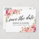 Calligraphy Pink Floral Save The Date Postcard