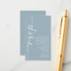 Mini size Modern Calligraphy QR Code Dusty Blue Wedding RSVP is in a set elegant calligraphy rotated and to the left, with your message to the right. Easily personalise the rest of the text to your own details and replace the sample QR code on the back with your own by simply replacing the sample code url with the url of your own wedding website.