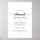 This calligraphy rehearsal dinner welcome sign is perfect for a rustic wedding rehearsal. The simple and elegant design features classic and fancy script typography in black and white.