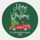 Calligraphy Script Christmas Red Truck Green Classic Round Sticker