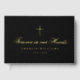 Forever in our hearts memorial funeral guestbook featuring a the text “forever in our hearts" in an elegant calligraphy script font with the name and dates or other custom text below. Above is a simple, elegant cross. Black or custom colour background.