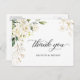 Calligraphy Script White Roses Garden Floral Wedding Thank You Postcard.