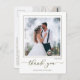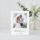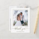 This design features a modern simple elegant calligraphy script, a minimalist minimal two 2 photo, a wedding photo photography couple, a basic clean contemporary template, an elegant typography script text font, a photo wedding thank you cards, a custom customized personalized design, a golden handwritten lettering font, a creative simplistic elegant script, a calligraphy wedding thank you budget-friendly vellum overlay effect postcards.