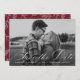 Announce your upcoming nuptials in style with our white calligraphy script save the date cards. The elegant save the dates display your horizontal engagement photo with "Save the Date" in a white calligraphy script. Personalize the front of the photo save the date by adding your names, wedding date, and city/state. The card reverses to display a white foliage pattern with a burgundy background or colour of your choice.