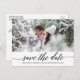 Modern Calligraphy Script Save The Date Engagement Announcement Couple Photo Postcard
