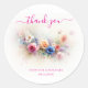 Calligraphy Script Thank You Watercolor Flowers Classic Round Sticker