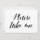 Simple and elegant black and white calligraphy style "Please take one" wedding sign.