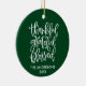 Calligraphy Thankful Grateful Blessed Green Ceramic Ornament