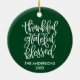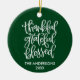 Calligraphy Thankful Grateful Blessed Ornament - Family Name and Year - Forest Green