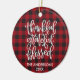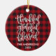 Calligraphy Thankful Grateful Blessed Red Buffalo Plaid Ornament - Family Name and Year - Photo Back
