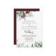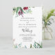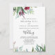 This calligraphy tropical floral front and back wedding invitation is perfect for a rustic wedding. This enchanting hand-painted design features precious blush, purple, burgundy flowers and green foliage neatly arranged into elegant bouquets.