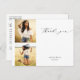 This pretty graduation thank you postcard features two photos and space to write a personal message to recipients. On the left, you can add two square photos of the new graduate. On the right, "Thank you" is written in modern calligraphy at the top. Below is a blank area to write custom handwritten notes to recipients. At the bottom, add the graduate's name and graduation year. On the back, there's room to add additional text if desired.