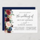 Modern Minimalist Simple yet Elegant Calligraphy Script Burgundy Floral Wedding Invitation Card. Watercolor floral includes burgundy roses, blue flowers, pink roses, red flower and botanical greenery. Navy Blue back.