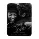 Calligraphy Wedding Classic Elegant Save The Date Magnet. An elegant classic wedding 'Save The Date' design with white flowing script calligraphy text. This magnet is a wonderful way to help you guest remember your wedding date. Please note that the black and white filter is on, if you do not want this do check out my collection for a similar template without the filter.
