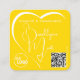 Calligraphy Yellow White Heart with Logo QR-Code Square Business Card