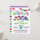 Invite all little monsters to celebrate your kid's birthday this Halloween with this calling all monsters birthday party invitation with cool, cute, and colourful monsters with horns and wings and fangs and eye stalks. The back of the invitation is printed with a cool pattern of stripes in a style that matches the monsters for a unique look!