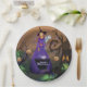 This Whimsical design features a witch in a purple dress making a brew. A black cat ,cute owl and a few pumpkins are hanging from the trees. The rich background in Orange, green, and brown with the castle in the background is the same as the main invitation.