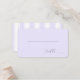 This wedding place card features a minimalist design with a light lavender background, creating an elegant and calming atmosphere. The layout includes a simple horizontal line above the word "table," which is written in an elegant cursive font, adding a touch of sophistication. The color palette consists of soft lavender contrasted by dark gray accents, emphasizing clarity and simplicity. Perfect for modern weddings, this card combines understated style with functional customizability, making it ideal for assigning seating arrangements with grace and ease.