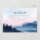 This wedding enclosure card features a serene watercolor landscape with soft pastel hues of light pink, lavender, and blue, creating a tranquil atmosphere. The design showcases a reflective body of water and layered mountain silhouettes, evoking a sense of peace and natural beauty. Elegant script typography highlights the phrase "the details," while clean serif font provides additional information, ensuring readability against the gentle background. Perfect for adding an artistic touch to your wedding stationery, this card captures the essence of anticipation and elegance in its minimalist yet evocative style.