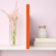 Solid orange background with a subtle vertical texture. The warm, vibrant hue conveys a sense of energy and positivity.