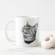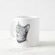 Calm White Minimal Cat Leaf Aesthetic Drawing pfp Coffee Mug