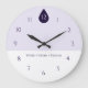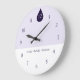 Minimalist yoga wall clock in soft lavender tones designed to create a calm and mindful atmosphere. The gentle purple background with dark violet numbers offers clear readability while maintaining a peaceful aesthetic.