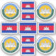 Four Custom-cut vinyl stickers with the coat of arms of Cambodia and seven stickers with the Cambodian (Khmer) flag in the centre