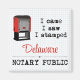 I Came, I Saw, I Stamped. Advertise your Delaware notary public business with a touch of humour. State pride button makes a thoughtful gift for any notary professional or loan signing agent who provides legal services to the public. This red notary stamp design is presented over a blue graph paper background.