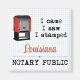 I Came, I Saw, I Stamped. Advertise your Louisiana notary public business with a touch of humour. State pride button makes a thoughtful gift for any notary professional or loan signing agent who provides legal services to the public. This red notary stamp design is presented over a blue graph paper background.