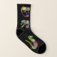 Ces chaussettes amusantes présentent des illustrations de caméléons dans un style de dessin animé mignon en couleurs vives et vibrantes sur un fond noir.