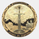 Gold wine bottle label of King Arthur's medieval Camelot Castle, and the wizard Merlin behind the knights Excalibur Sword. This is a beautiful Camelot Label that can be used for labelling your wines. Beautiful used for wine labels or for product labels. The Dragon is around the perimeter. This is a copy of a coin from France.