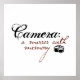 This stylish rendering of the phrase "Camera: A mirror with memory" in cursive font with a stylized image of a camera is perfect for any photographer's work wardrobe.
