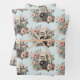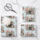 Wrapping paper sheets with a vintage styled camera decorated with flowers. Pastel colors of pink, cream and green.
