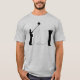 Brown baseball style shirt with black silhouette figures of a camera man and sound guy. On the back of the shirt is a single vintage camera, in black silhouette, near the neckline.