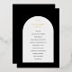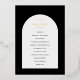 Programme de mariage moderne avec votre monogramme ainsi que votre ordre de cérémonie et de mariage à l'intérieur d'une arche de couleur blanche off sur un arrière - plan noir. Votre monogramme et vos noms sont en papier d'aluminium et tout le texte sur le devant peut être modifié pour être mis en papier dans l'outil d'édition de conception. Ce design simple mais élégant en noir et blanc classique avec papier peint est parfait pour tout style mariage.