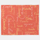 An orange red background colour... pale yellow and white handwritten font styles repeating all over the fabric... a nice and personalized idea for any girl