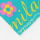 Typographic name and flower aqua, pink, yellow and white on a dark aqua background custom blanket design. Background colour can be changed if required. Fun personalized graphic text and flower art personalized blanket. Ideal for the car, camping for winter nights or trips out. Personalize with your own name, currently reads Camila for help with personalization and other name lengths please contact me. © Art and design by Sarah Trett for www.mylittleeden.com