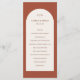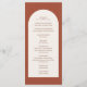 Modern wedding program featuring your monogram along with your order of ceremony and wedding party inside of a cream coloured arch over a rust background. This simple yet elegant design with earthy desert colours is great for a boho style wedding in summer or fall.