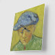 Camille Roulin by Vincent Van Gogh, oil on canvas 1888, is a frontal portrait painting of a young Frenchman with piercing blue eyes wearing a blue cap and green-brown coat against an acidic yellow background. The subject was the son of the postman of the town of Arles who befriended Van Gogh and let his family pose for many portraits. The thick, impasto brush strokes of heightened, bold and contrasting colours remarkably capture the character and inner life of the subject as Van Gogh’s style became more bold and assured during his time in Arles in the south of France.