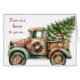 Sur le devant de cette mignonne carte de voeux de Noël, un camion de ferme de style rétro est décoré d'une couronne de Noël et porte à la maison un arbre à feuillage persistant fraîchement coupé. Un Chien sibérien Husky porte un chapeau de Père Noël rouge et blanc et regarde à l'arrière du camion. Le texte rouge d'un côté dit "De chez nous à la vôtre...", et le sentiment est maintenu à l'intérieur. Tout le texte, à l'avant et à l'intérieur, peut être facilement customisé par vous pour dire ce que vous voulez.