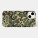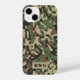 Camo camouflage pattern in beige, medium and dark brown and green. Personalize with your name or initials in matching stencil font.