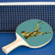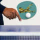 Green and black camo deer head silhouette ping pong paddle on teal background.