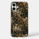 Customize this gold foil camo leopard print iPhone 16 plus case with your your name in a trendy modern CAP font in gold on black. It's so chic!