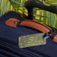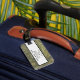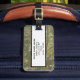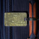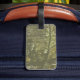 A luggage tag featuring a camouflage design. Personalize the text on front inside sheer area outlined in black.