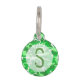 Great gift idea for dog or cat lovers! This vivid lime green camouflage pattern pet name tag features customizable text, perfect for personalizing with your four-legged friend's name, phone number, and monogram initial on the back. Stylish safety!