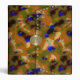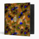 The original collage by ZoeSPEAK on this all purpose Binder is a camouflage pattern designed for those times when you want to be noticed. The basic pattern is made of traditional camouflage shapes in muted colours, earth tones of tan, brown and olive drab greens. But throughout this are round shapes emerging through the camouflage in bright cobalt blue. The binder is designed as a clutch bag. The edge of the top flap of the purse is decorated with light olive green discs with blue dots in their centres, looking a bit like sequins. The clasp of the bag is a gold oval, curving outward with a highlight in the centre. There is a monogram in black in the centre of the clasp. This is set to personalize, or delete if you wish. The design is repeated on the back cover, and the spine is the camouflage pattern.