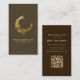 The back features a deep dark brown background with fully customizable contact details, including your title, phone number, email, address, website, and a scannable QR Code. Everything is editable — from the business name to every detail on the back — allowing you to make it perfectly match your brand or style.