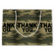 Show your appreciation with bold style using this Camouflage "Thank You" gift bag. Designed with a rugged camouflage pattern and strong, clean typography, it's perfect for honouring service members, celebrating teamwork, or giving thanks with an edge. Durable, eye-catching, and versatile—this bag adds a powerful touch to your gesture of gratitude.